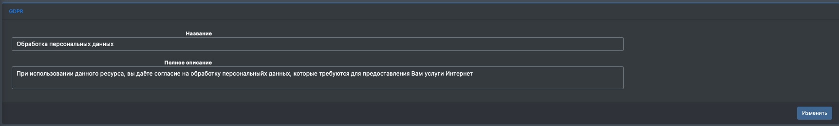 Настройка>GDPR>Добавить GDPR