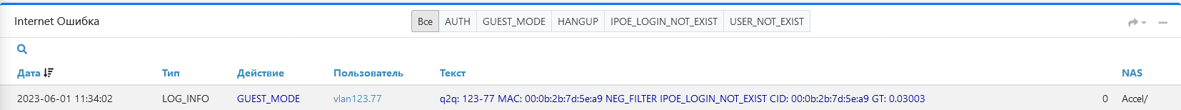 | USER_MAC | Если парсер находит данную переменную приводи её в вид xx:xx:xx:xx:xx:xx. Сопоставляется с полем CID сервиса интернет при авторизации. |