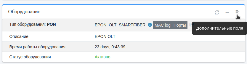 $conf{EQUIPMENT_SW_INFO_FIELDS} - Отображение дополнительных полей и изменение существующих по оборудованию абонента