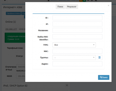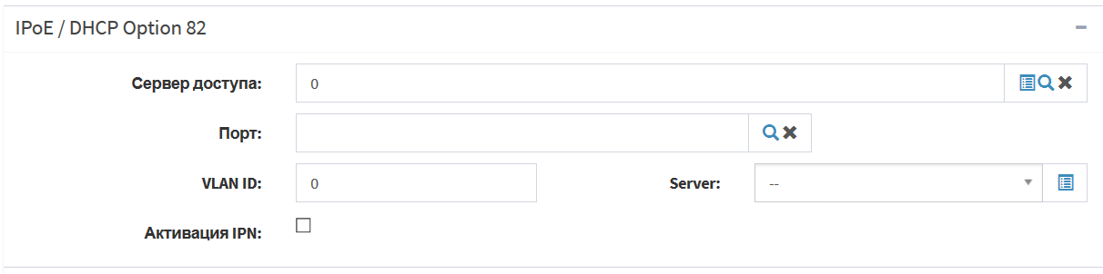 | Активация IPN | Активация Авторизация Internet IPoE через поднятие внешних команд. Указывать только при использовании сервера доступа стипом ipoe |