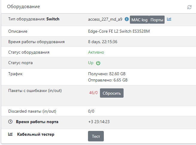 Есть возможность провести тест кабеля прямо с этой панели, см. Кабельный тестер.