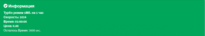 | Турбо режим 1Мб. на 1 час (Турбо режим 1Мб. на 2 часа) | Описание сервиса. |