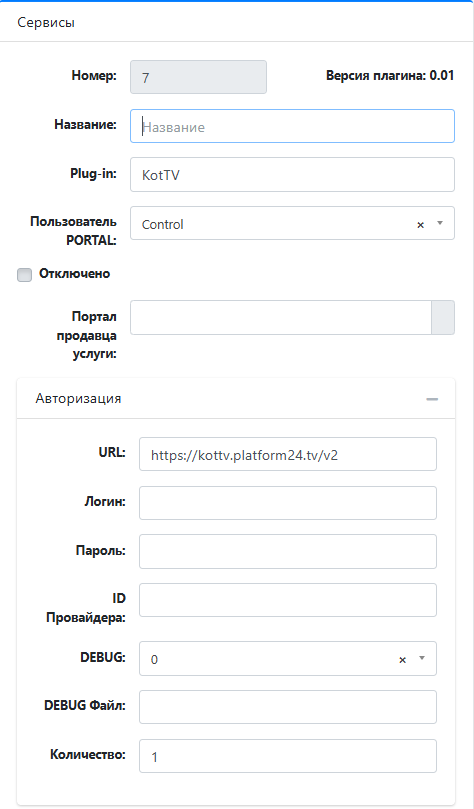 Выбираем сервис KOTTV. Вводим необходимые данные. В поле Filter id вносим id тарифа в системе KOTTV.