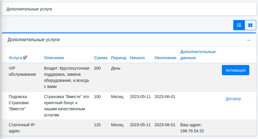 Если у абонента есть возможность активировать услугу, то соответсвенно в кабинете пользователя будет предоставлена такая возможность через кнопку "Активация".