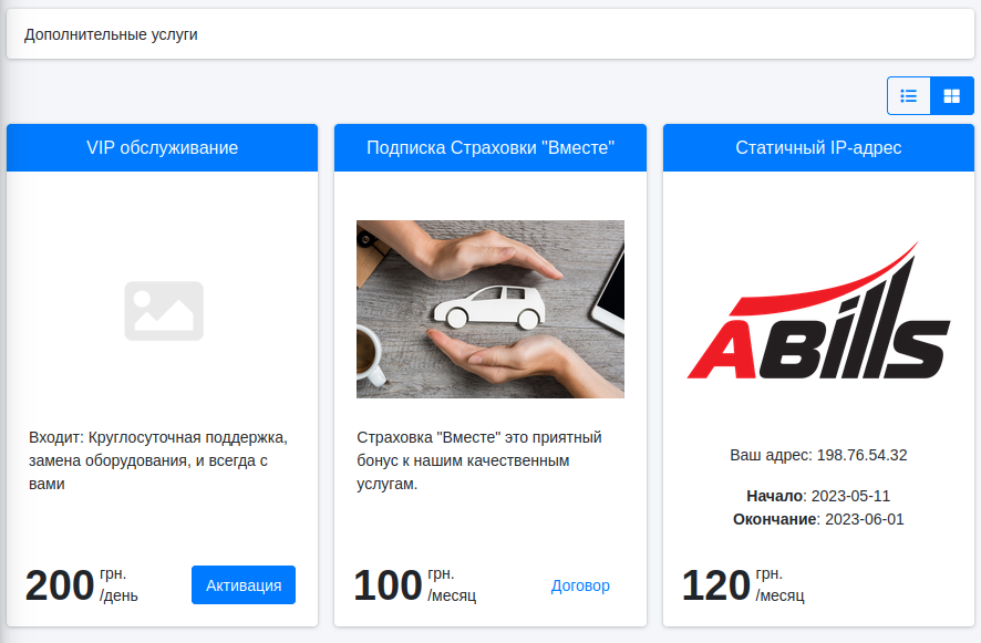 При обычных настройках кабинет пользователя Abon выглядит так: