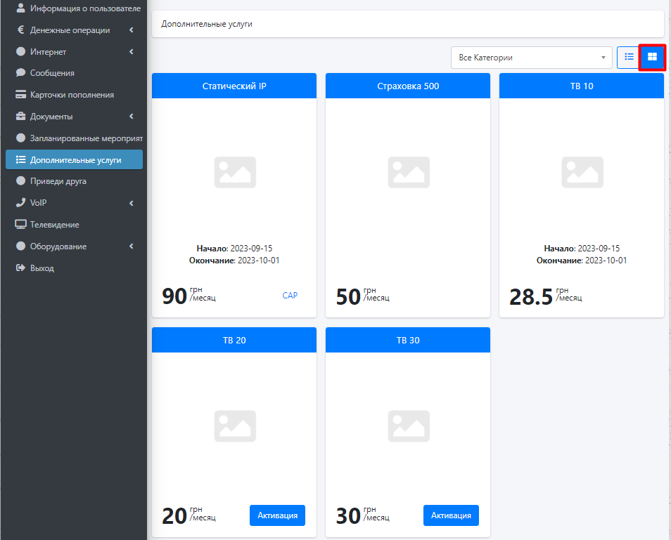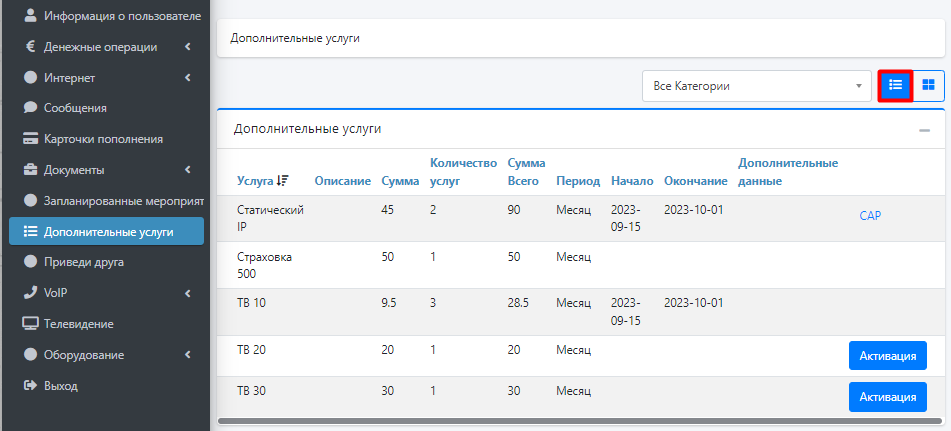 | Ручное включение услуги | Ручная активация услуги. После завершения услуги система автоматически не продлевает сервис. Для продления сервиса нужно чтобы администратор нажал кнопку активация. |