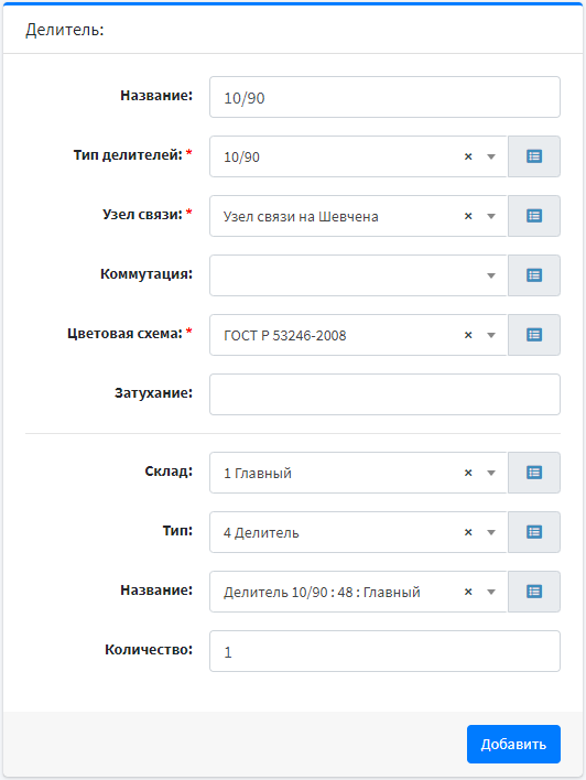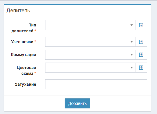 Добавить делитель на коммутацию можно через меню коммутации Добавить/Делитель.