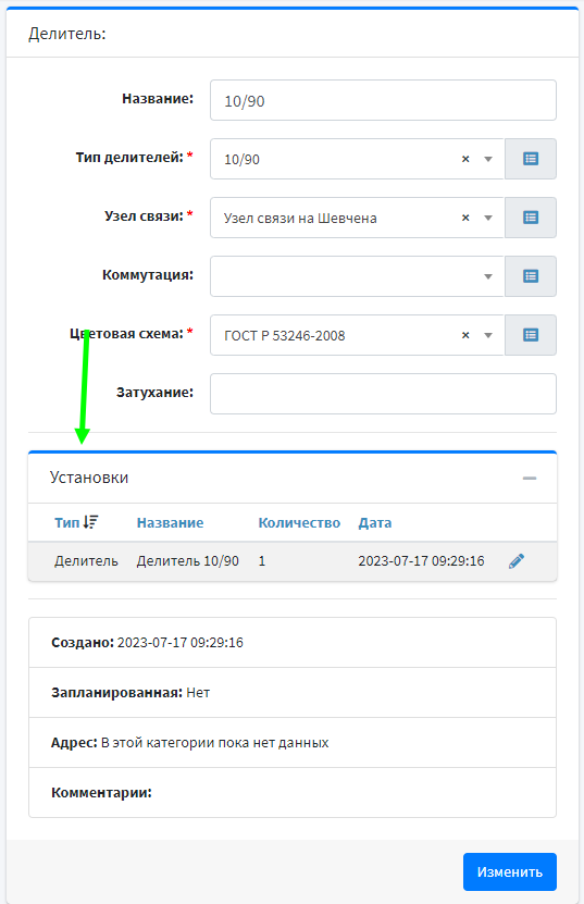 Добавить делитель можно в Настройка>Cablecat>Делители