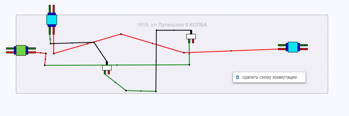 Для удаления коммутации нужно нажать правую кнопку мыши на нужную и выбрать "Удалить коммутацию"