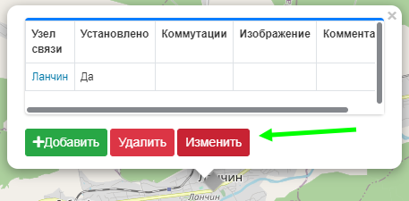 Если нужно переместить уже существующий на карте узел связи, надо кликнуть на нём правой кнопкой мыши (при этом на объекте должна быть иконка руки с указательным пальцем), при этом он становится активным и, нажатием левой кнопки мыши на узле, можно его переместить. Чтобы сохранить изменения нужно снова кликнуть правой кнопкой мыши на этом узле связи.