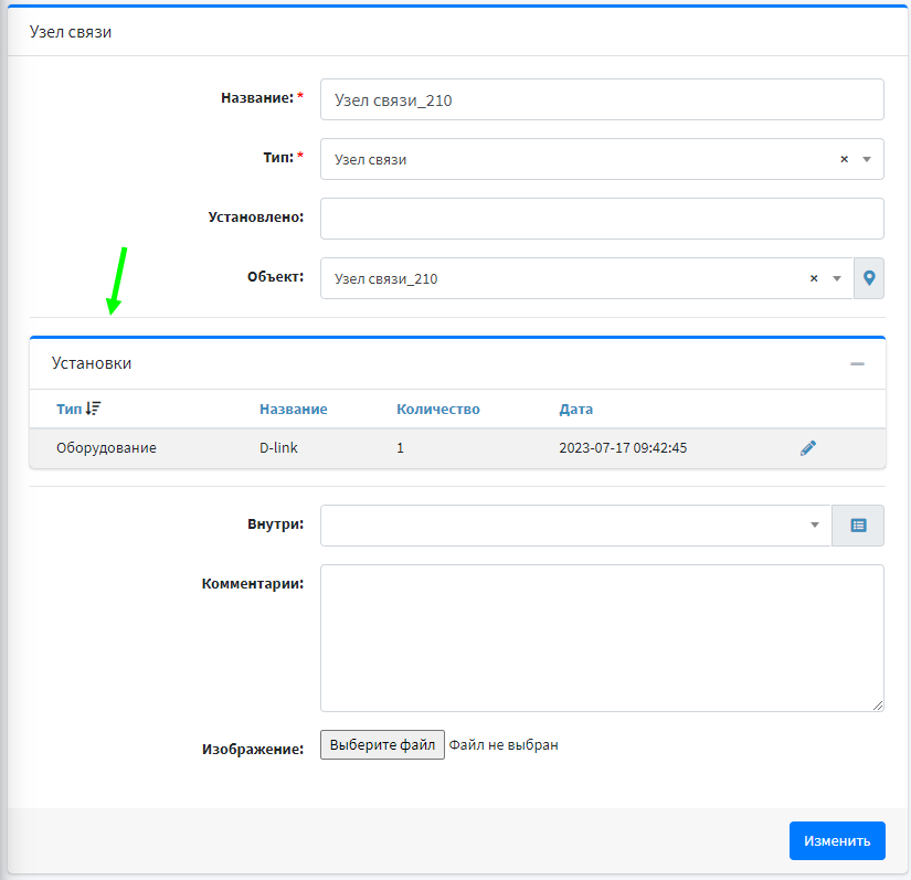 При добавлении нового узла связи можете списать товар со склада внизу формы.