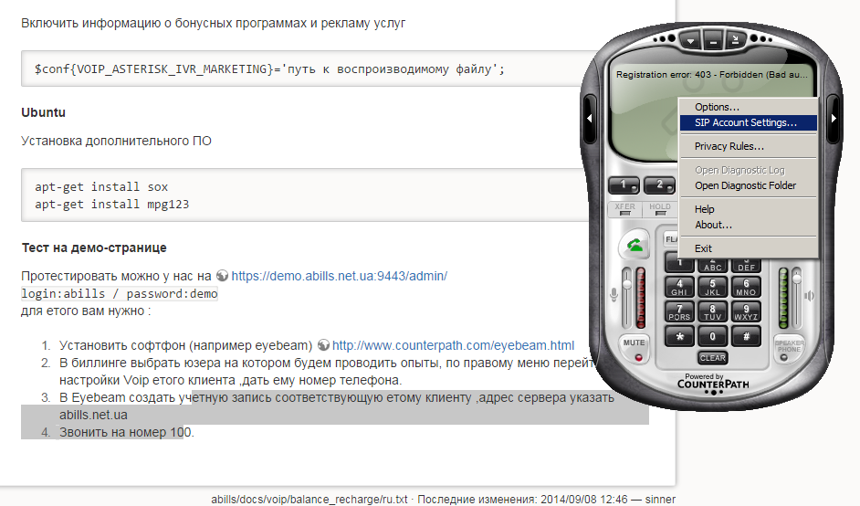 Отладочные данные записываются в файлы abills/var/log/ivr.log
