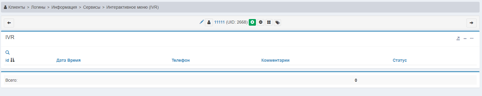 Меню Клиенты>Логины>Информация>Сервисы>Интерактивное меню (IVR)