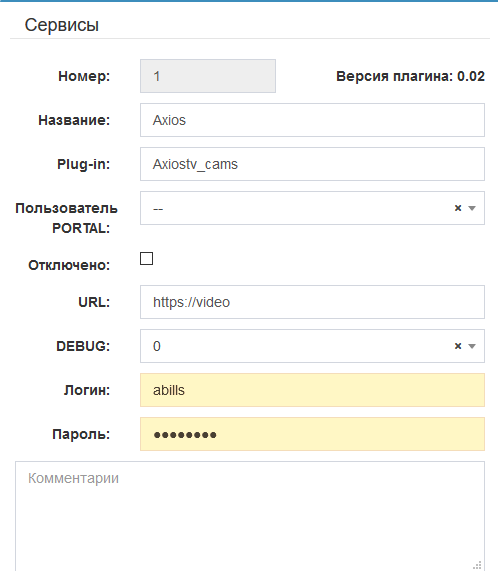 Настройка> Камеры> Сервисы