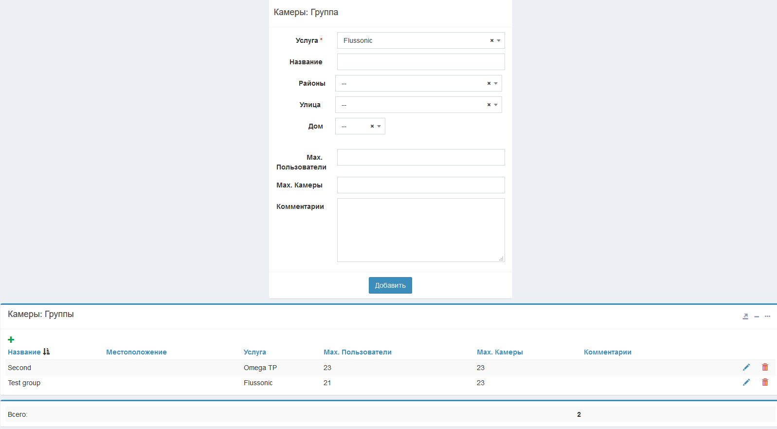 Группы используются для привязки камер к определенным пользователям.