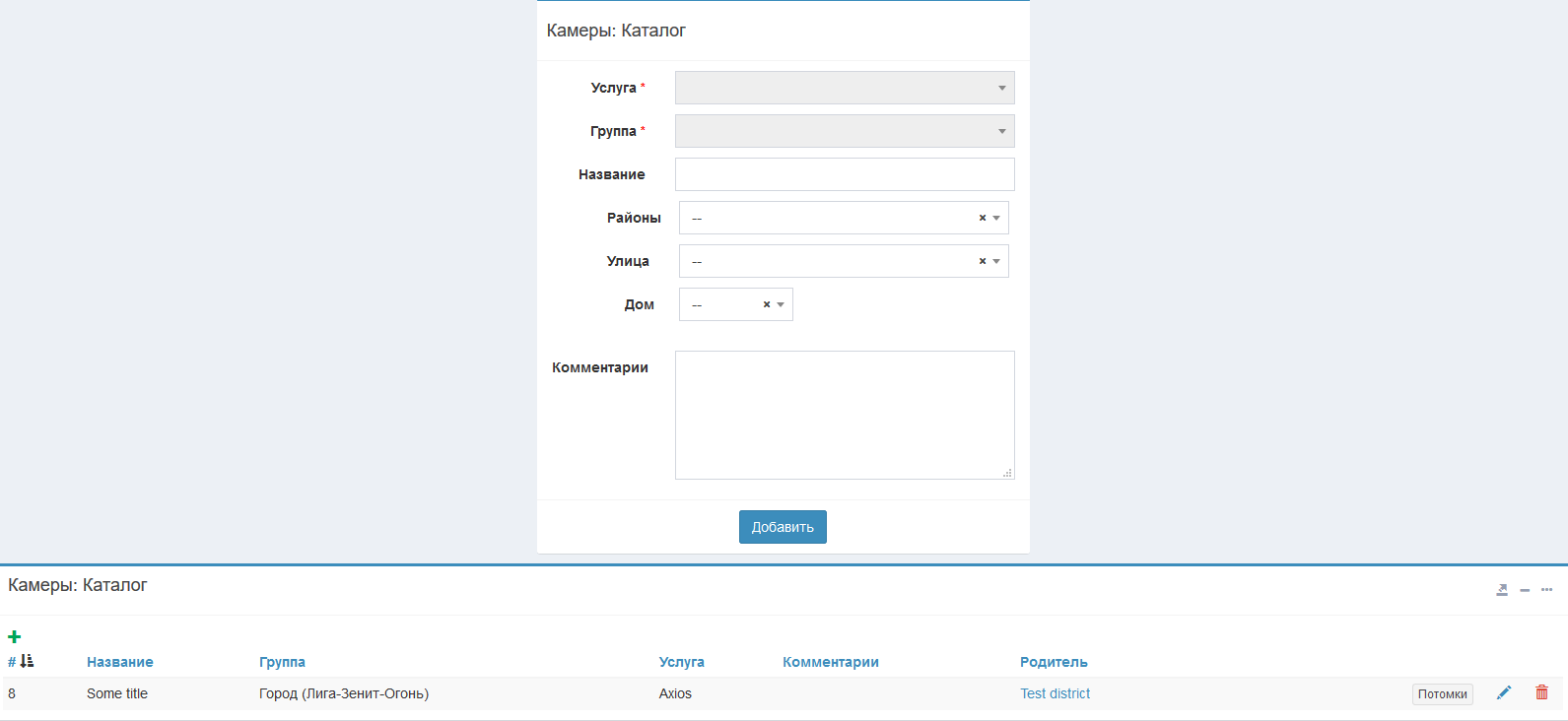 Есть возможность создавать каталоги произвольной вложенности. При нажатии на кнопку "Потомки" вы перейдёте к потомкам отмеченного каталога. Если нажать на кнопку "+" вы создадите еще один каталог внутри.