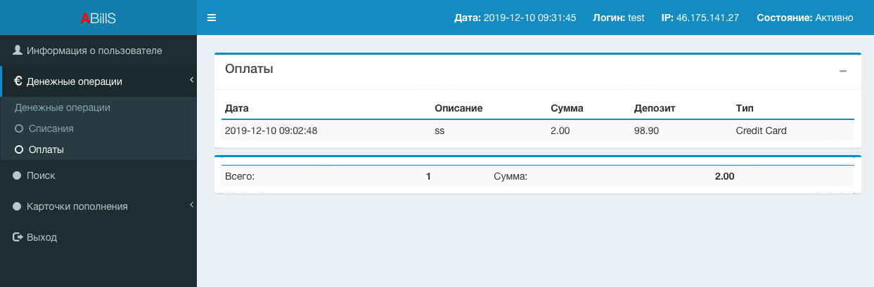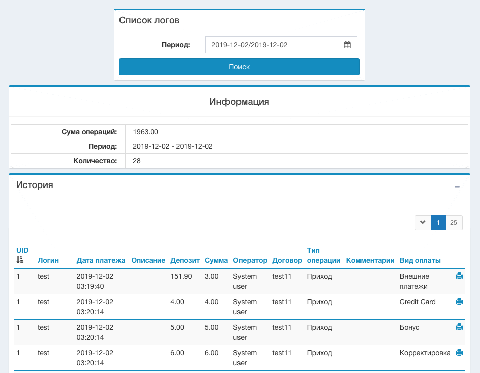 Возможность просмотреть лог операций, позволит вам пересмотреть количество операций и общую сумму этих операций за выбранный период.