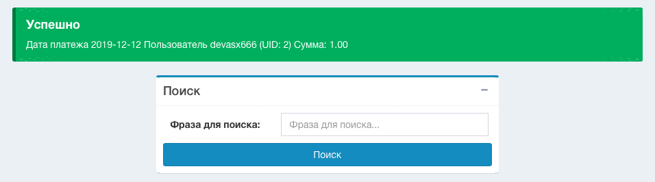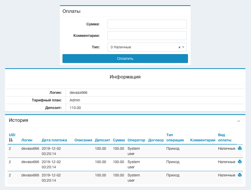 После успешного пополнения вы увидите, что оплата прошла успешно, логин и uid абонента, сумму, на которую было пополнения баланса абонента.