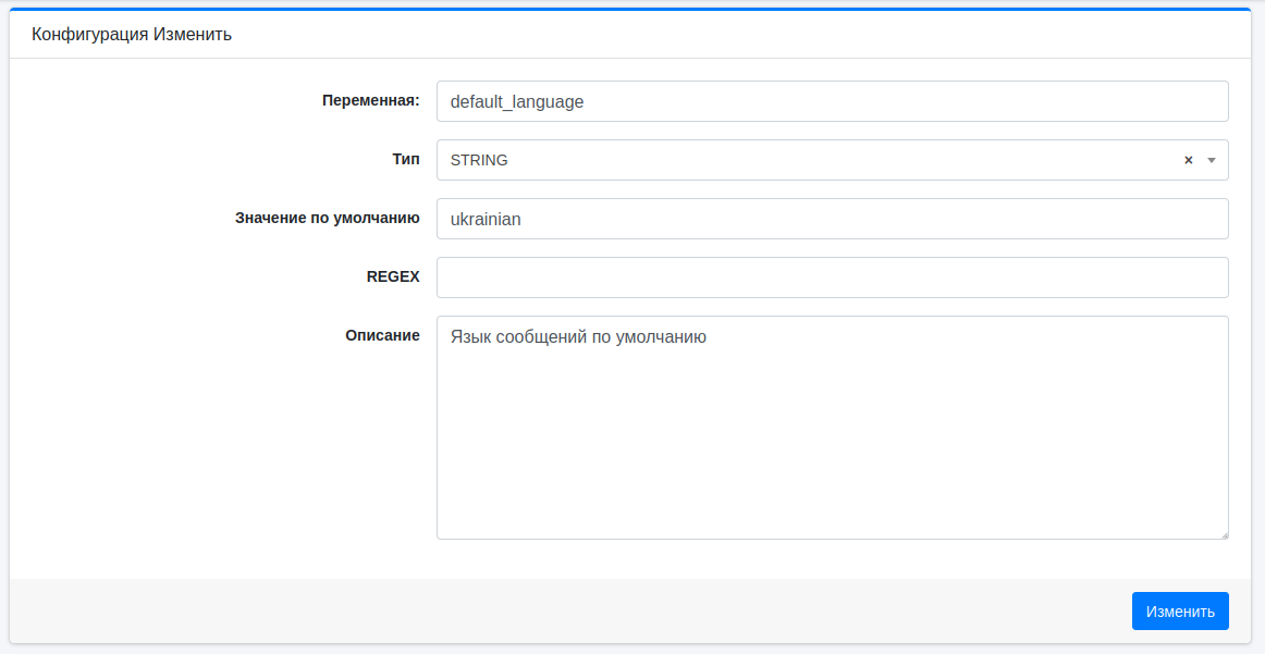 | Значение | Значение по умолчанию переменной или для типа SELECT возможное значение и подпись значения для типов MULTIVAL и MULTIMULTIVAL - "ключи" значений |
