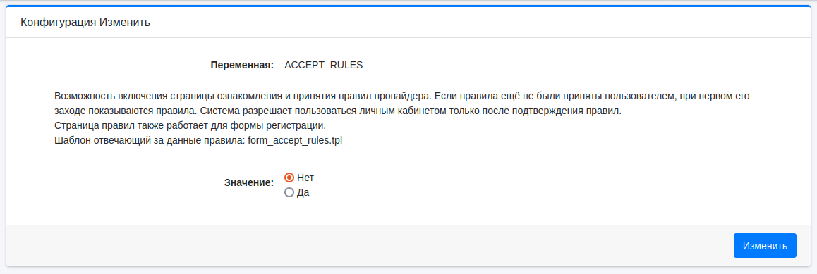 Меню настройки основных параметров системы Настройка > Конфигурация.