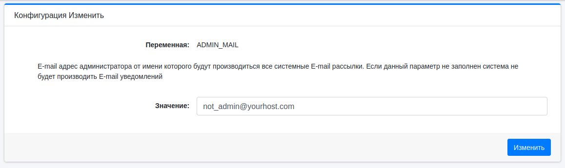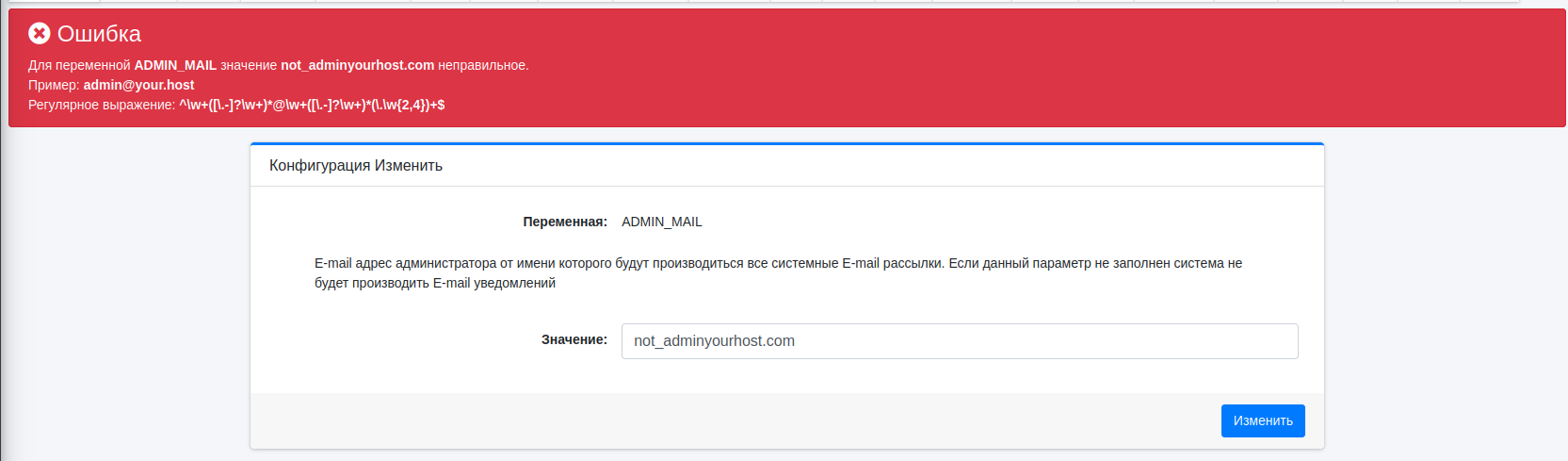 При попытке ввода переменной с невалидным email, система отреагирует соответстующим образом: