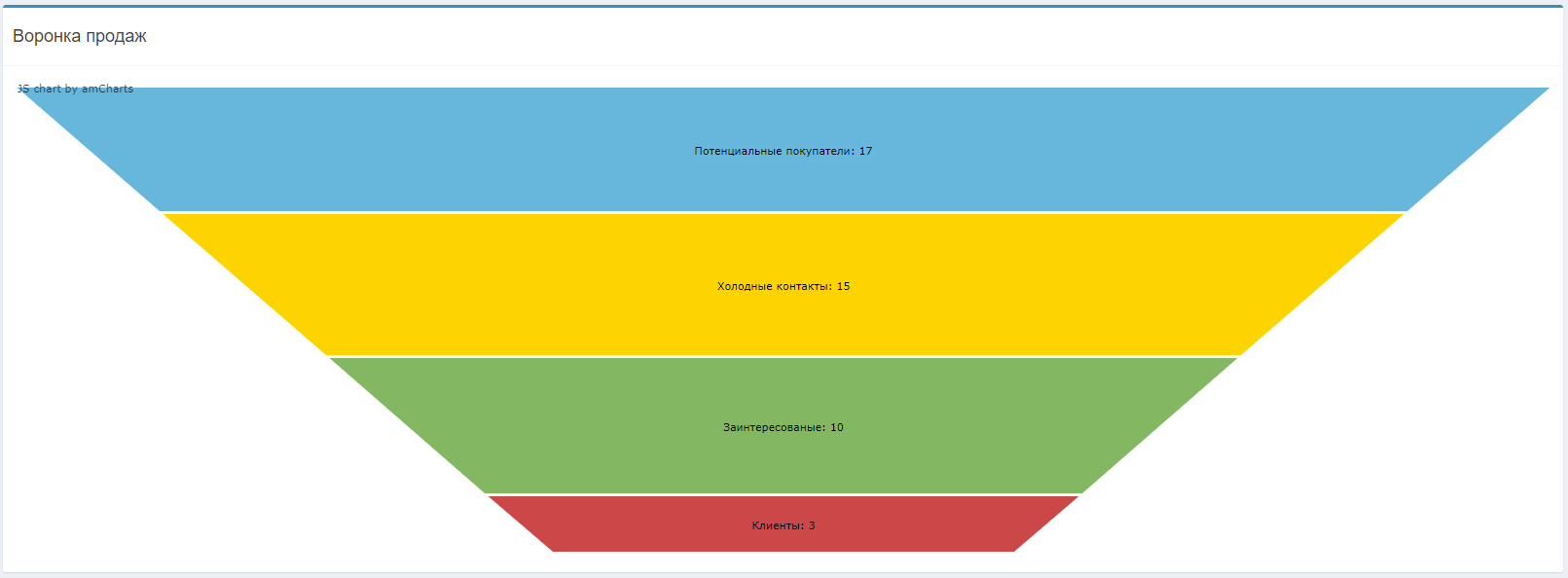 График воронки продаж - это отражение движения лидов по шагам, которые они проходят в соответствии с заведенными шагами.