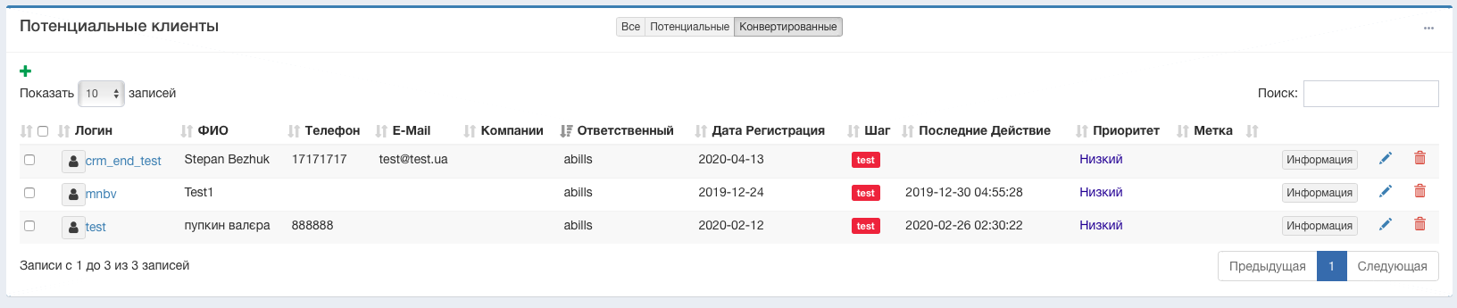 После заполнения пользователь не будет отображаться в списке потенциальных клиентов.