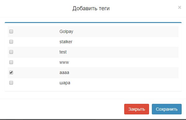 Для добавления тегов нужно включить модуль Tags, после нажать на кнопку , выбрать нужные теги и нажать на кнопку .