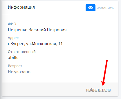 Для настройки отображаемых полей нужно нажать на кнопку выбрать поля.