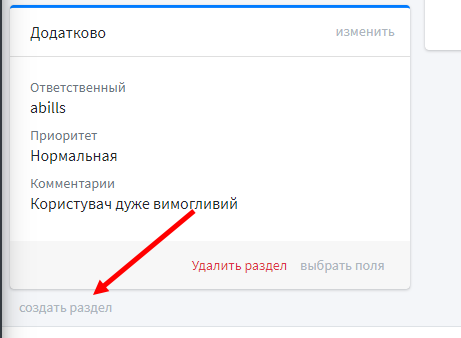 Для создания раздела информации нажмите на кнопку "создать раздел" под существующими разделами.