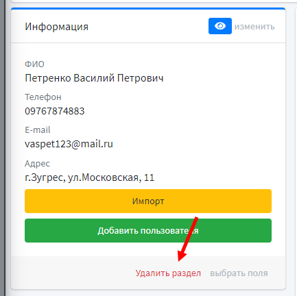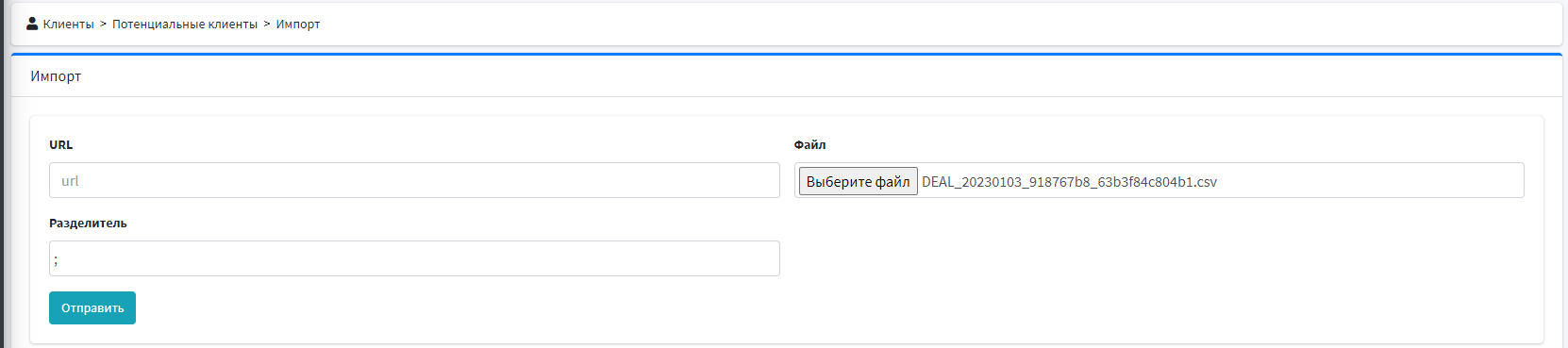 Для импорта информации от одного потенциального клиента к другому, нужно нажать на кнопку Импорт.