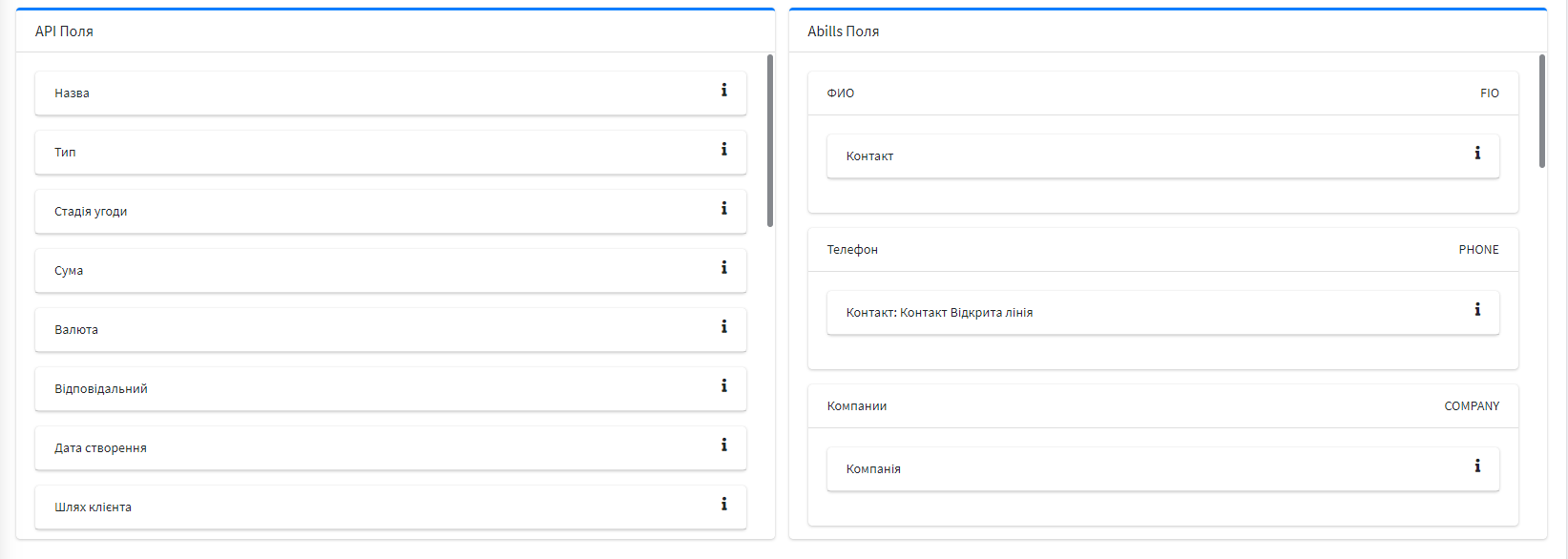 Поскольку имена полей в биллинге и другой системе могут отличаться нужно задать правила конвертации.