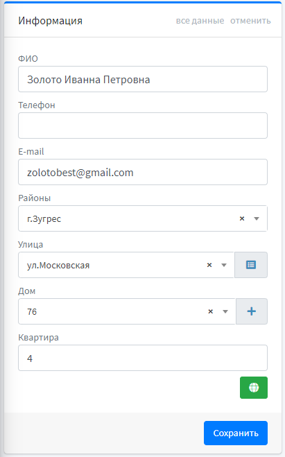 Чтобы перейти на редактирование всех полей нажмите кнопку все данные.
