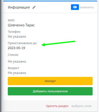 Чтобы приостановить работу с потенциальным клиентом нужно заполнить поле "Приостановлено до".