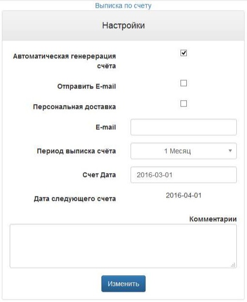 | Автоматическая генерация счёта | Включить автоматическую генерацию счетов |