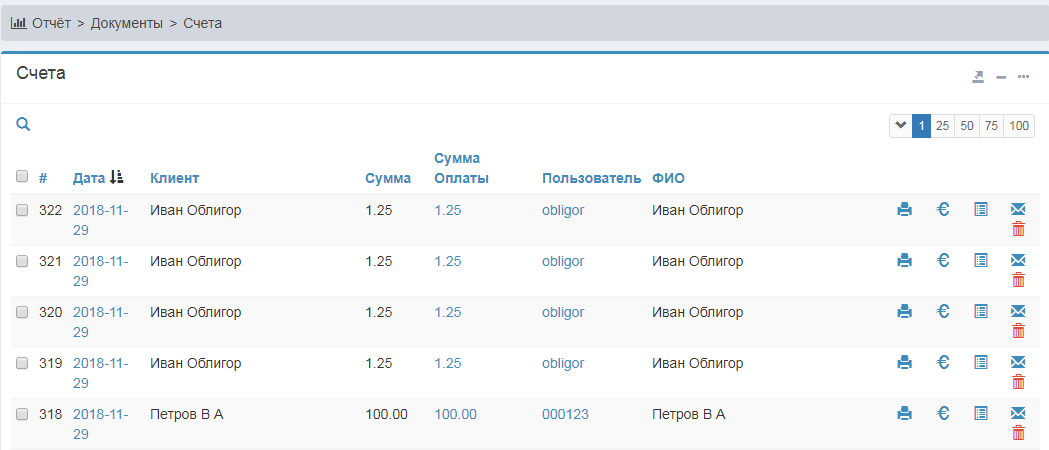 | Просмотреть оплаты связанные с данным счётом | |