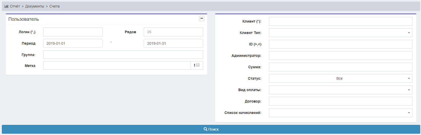| Отправить счёт на E-mail | |