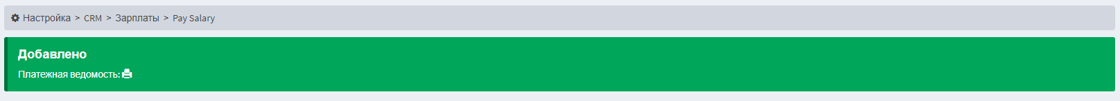 Видим успешное уведомление. Если нужно, можем распечатать платежную ведомость, нажав на кнопку