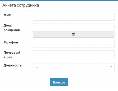 - Заполните форму Анкета сотрудника.