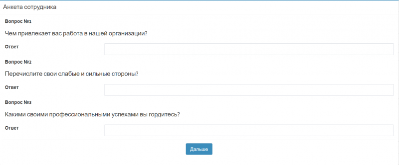 Нажмите «Дальше» для отправки анкеты.