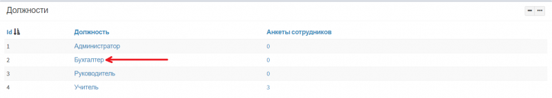1. Перейдите в пункт меню Настройка>Сотрудники>Сотрудники>Анкета сотрудника и нажмите на должность для набора новых сотрудников. В примере «Бухгалтер»