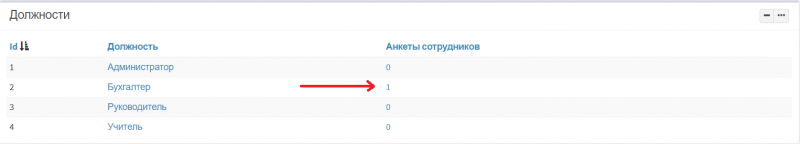 4. Перейдите в пункт меню Настройка>Сотрудники>Сотрудники>Анкета сотрудника. В колонке «Анкеты сотрудников» будет отображаться количество заполнивших анкету. Чтобы ознакомиться с анкетами нажмите на это число.
