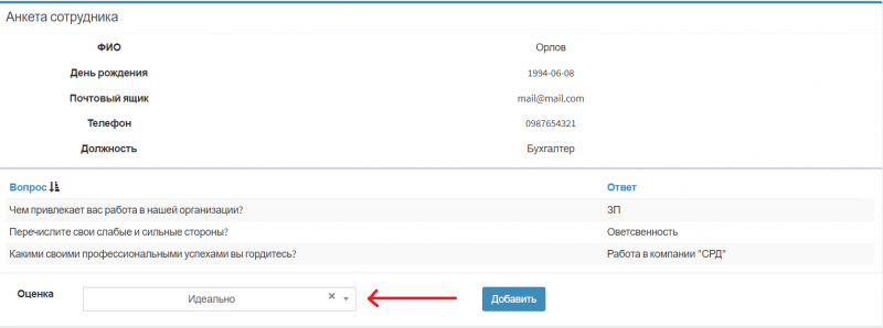 6. Оцените анкету. Так будет легче выбрать лучшего кандидата на должность.