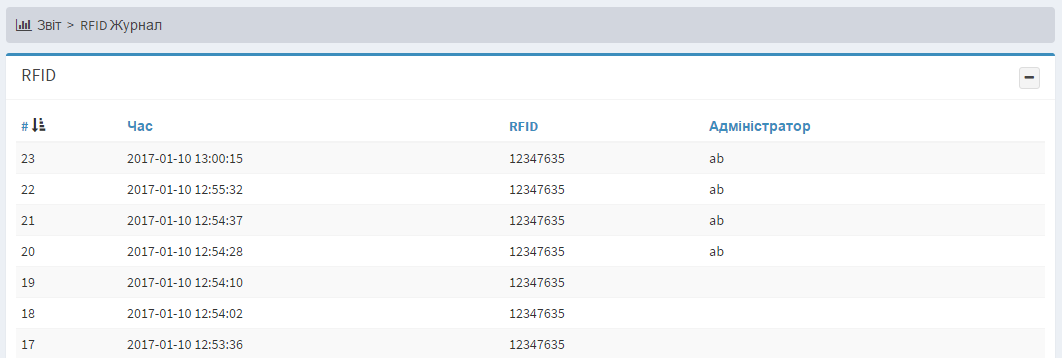 Идентификация администратора, по соответствию номера RFID метки (без нулей) и поля GPS IMEI.