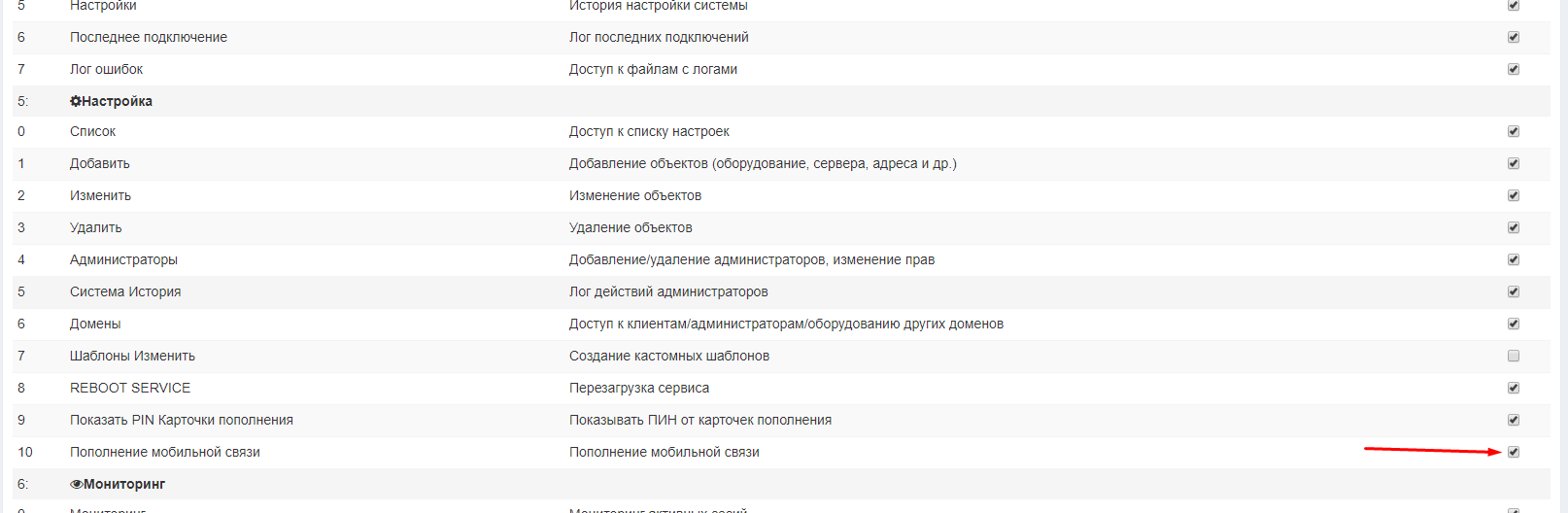 Для начала нужно включить право 5.10 "Пополнение мобильного счета" в меню Настройка>Администраторы>Права.