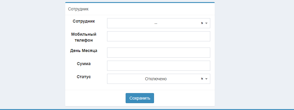 В crontab можно прописать запуск billd плагина, который будет выполнять периодическое пополнение без вашего участия каждый день в 9:00. Плагин находит всех сотрудников, у которых указан текущий день месяца и статус Активно и выполняет пополнение в соответствии с указанной суммой.