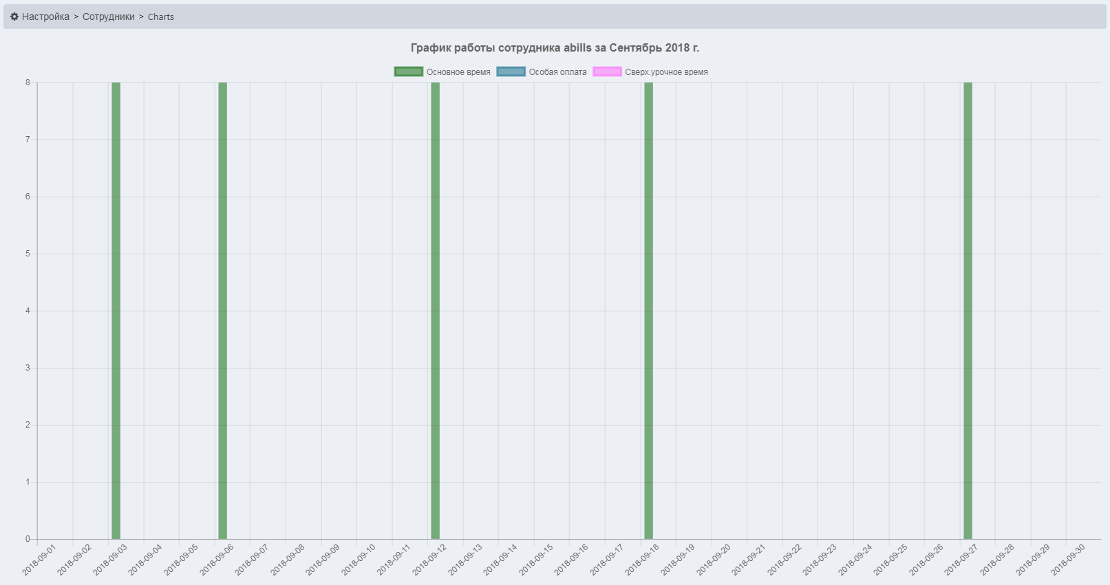 | Сверх. урочное время | Время, которое считается вне рабочего времени. Считается в часах. |