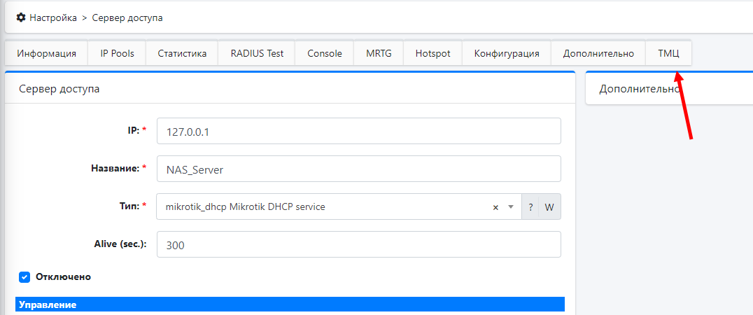 Настройка>Сервер доступа, выбрать сервер доступа, вкладка "ТМЦ".
