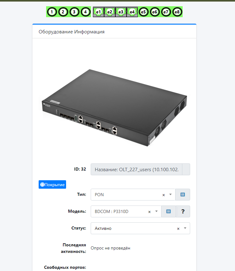 дату и время последней активности оборудования (для мониторинга активности оборудования используется плагин equipment_ping).