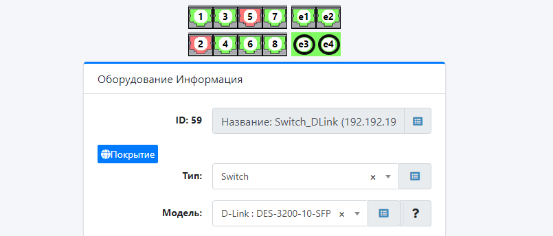 Если выбран тип Switch, то будет показана визуализация свободных и занятых портов